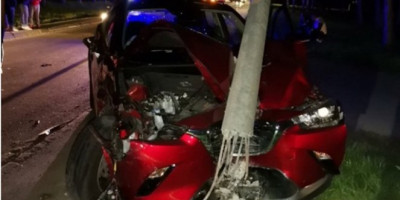 NA MESTU NESREĆE KRŠ I LOM! Luksuznom mazdom devojke su se zakucale u banderu, JOŠ TOKOM PRETICANJA IZGUBILE SU KONTROLU
