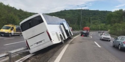 POSLE NEVREMENA U BEOGRADU, IMA POVREĐENIH! Na auto-putu prevrnut autobus, ograda pogodila ženu kod Ade Huje! /FOTO/