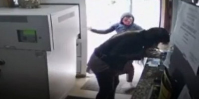 Nadzorna kamera je snimila otvorena vrata menjačnice i mladića koji stoji napolju i gleda unutra, dok žena broji novac na šalteru.