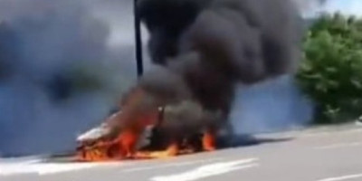 Na snimku se vidi kako je žestoka vatra zahvatila ceo automobil i da od njega skoro ništa nije ostalo, a gusti crni dim se nadvio nad celim tim delom puta.