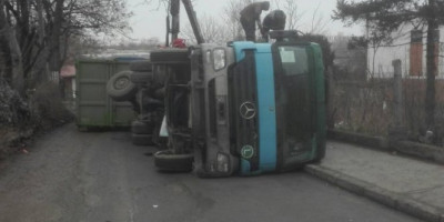 Kamion je prevozio pesak, koji se prilikom prevrtanja vozila rasuo po putu.