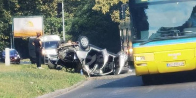 /VIDEO/ AUTOMOBILOM PREŠAO U SUPROTNU TRAKU, UDARIO U STUBIĆE, PA SE PREVRNUO NA KROV! Užasna nesreća u centru Beograda!