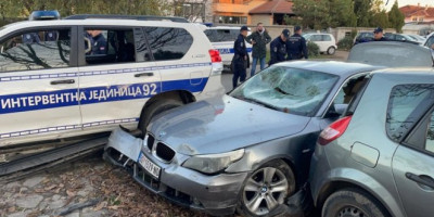 Posle nekoliko kilometara duge potere policija je zaustavila BMW. Tom prilikom su oštećena 3 policijska vozila u koje je BMW sa beguncem udario.