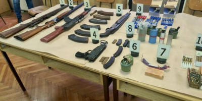 Kriminalistička policija je stanu osumnjičenog pronašla i oduzela automatsku pušku sa sedam okvira i tromblonskim nastavkom, automatski pištolj, ručnu bombu, pakovanje TNT eksploziva sa dva električna upaljača, karabin, kratež, lovačku pušku, 2.101 komad municije različitog kalibra, tri vojna suzavca i biber sprej.