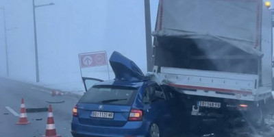 Vozilo marke Škoda naletelo je na kamion dok su radnici izvodili radove na horiznotalnoj siganilazciji. Škoda je potpuno smrskana, ali nije poznato da li je neko povređen.