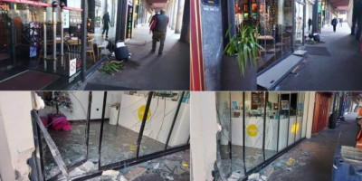 Dao je gas i zaleteo se u izlog...Kada je prema njegovom mišljenju napravio dovoljno štete, dao se u bekstvo.
