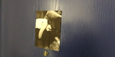 Na vratima stana gde je devojčica živela okačena je njena slika.