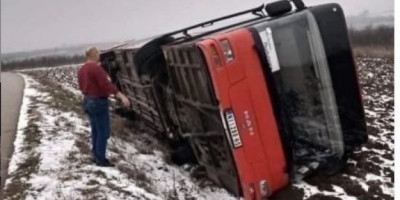 Kako prenosi 192, autobus je sleteo i prevrnuo se u kanal pored puta, najverovatnije usled klizavog kolovoza.