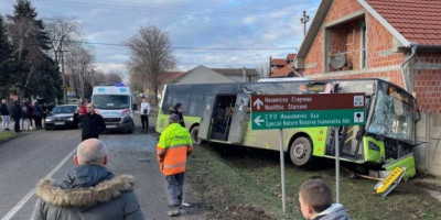 Na fotografijama koje su nam stigle s terena vidi se da je autobus na liniji Pančevo – Banatski Brestovac u Omoljici udario u kuću, a prednje staklo autobusa je razbijeno.