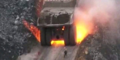 Teško vozilo marke "belaz" nosivosti 200 tona zapalilo se večeras na Površinskom kopu rudnika bakra Majdanpek.