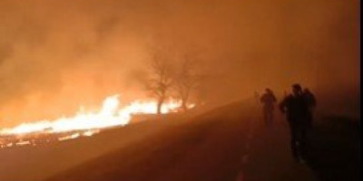 Ljudi unezvereno beže pred vatrenom stihijom koja guta nisko rastinje i preti da poprimi katastrofalne razmere.