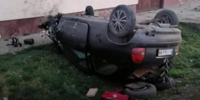Od siline udarca vidljiva su oštećena na stambenoj jedinici, a auto je gotovo potpuno uništen. Prevrnuo se i završio na krovu, ali na sreću niko nije povređen.