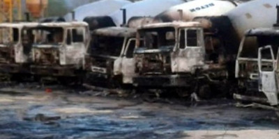 Trojica maskiranih napadača uperili su pištolj u glavu čuvaru firme 5D, pa zapalili devet kamiona, dve građevinske mašine i deo asfaltne baze * Sumnja se da je vlasnike firme napala konkurencija