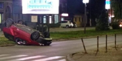 U automobilu, koji se posle sudara prevrnuo, bili su otac i majka sa maloletnim detetom.