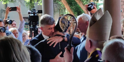 - Biskupe, stići ćemo, znamo to svi dobro, ali zaboravljamo. Svi to skrivamo. Nije bitno ko će prvi stići do cilja, važno je da cilj postoji, a to je ljubav Hristova. To znamo mi koji verujemo u Hrista. Poslednju reč u našem životu ima život - rekao je patrijarh Porfirije, a potom zagrlio Nenada Periša.