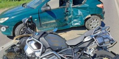 Na fotografijama se vidi da je jedna strana automobil gotovo skroz smrskana, a štetu je pretrpeo i motocikl.