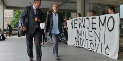 Aleksić je zajedno sa advokatom i suprugom ušao u zgradu Palate pravde, a ispred su ga, kao i prethodni put, sačekali aktivisti sa transparentima na kojima piše "Pravda za žrtve kazna za počinioce" i "Verujemo Mileni Radulović".