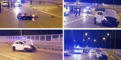 (Foto, Video) PRVI SNIMCI SA MESTA NESREĆE KOD HIPODROMA! Telo na putu, smrskan automobil, motor, delovi svugde...