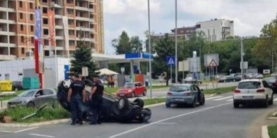 Kako se može videti na snimku sa lica mesta, automobil je prevrnut na krov, a pored stoji autobus GSP-a.