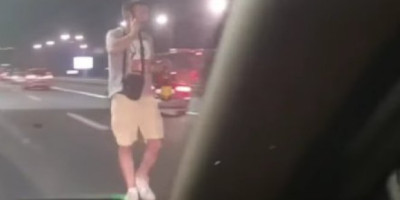 Naime, kako se vidi na snimku objavljenom na društvenim mrežama, mladić u šorcu i majici u jednoj ruci drži alkoholno piće, dok u drugoj drži telefon i kreće se autoputem na Autokomandi.