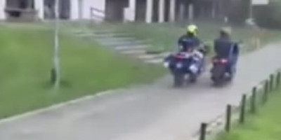 Uz zaglušujuće zvuke sirene policajac na motociklu pod rotacijom i muškarac ma motociklu sjurili su se kroz novobeograadski blok, ne obraćajući previše pažnje na stanare i roditelje s decom koji su bukvalno bili prinuđen da skaču u stranu sa staze kako ne bi bili povređeni.