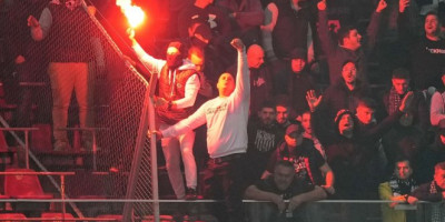 Na stadionu tokom utakmice navijači Partizana zapalili su nekoliko baklji.