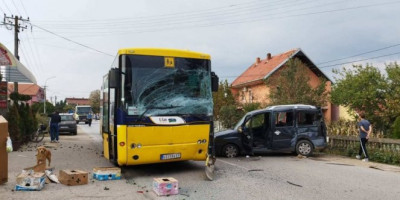 On je svojim automobilom “fiat dublo” najpre udario u traktor, a zatim u autobus prevoznika “Aleks turs” koji je prevozio radnike.