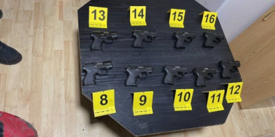 Policija je, prilikom pretresa kuće u kojoj živi osumnjičeni, pronašla tri putne torbe u kojima se nalazilo pet automatskih pušaka i više pištolja.