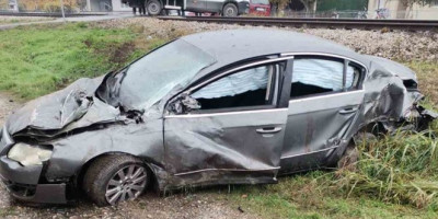 U direktnom sudaru voz je odbacio automobil na put pored pruge. Ovaj pružni prelaz je potpuno neobezbeđen, bez zaustavne rampe i svetlosne signalizacije.