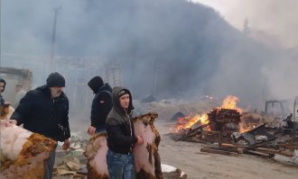 Vatrogasci se još bore sa vatrom koja bukti u više objekata na ovom prostoru.