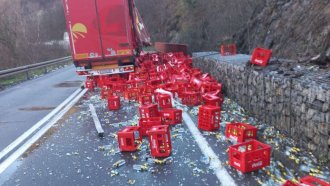 Na magistralnom putu Kraljevo - Raška u blizini mesta Bogutovac došlo je do nesvakidašnjeg incidenta u saobraćaju kada se iz prikolice kamiona na put prosulo na desetine gajbi sa sokom.
