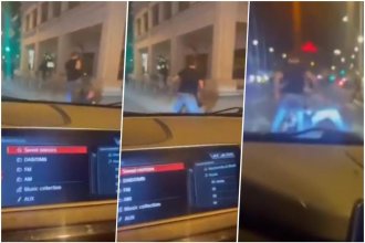 Na snimku koji se širi mrežama vide se mladići koji se tuku nasred kolovoza, padaju po haubama, šutiraju i jure oko automobila.
