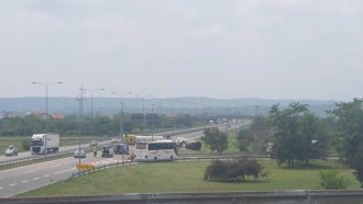 Kako se vidi na snimku, jedno vozilo se iz za sada nepoznatog razloga prevrnulo na krov i blokiralo dve trake