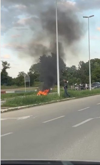 U video snimku koji je objavljen na toj društvenoj mreži, vidi se kako vatra "guta" motocikl koji se nalazi na kolovozu.
