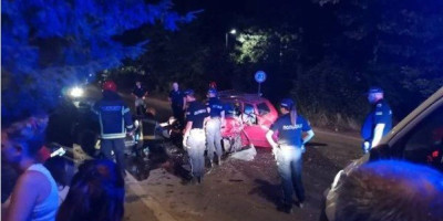 Na Instagram profilu 192 objavljena je jeziva fotografija sa mesta udesa na kojoj se vidi uništeni automobil, ali i vatrogasci koji seku "jugo" kako bi oslobodili povređene.