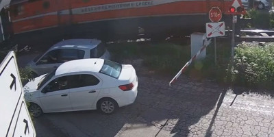 Naime pokušavajući da pređu prugu pre nego što se rampa spusti, ova dvojica vozača ostala su "zarobljena".