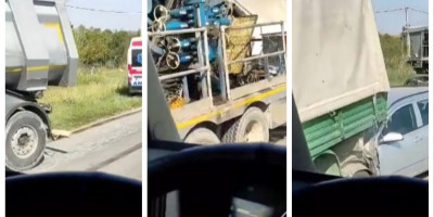 Kako je objavljeno na Instagram profilu "192" u sudaru su učestvovala tri kamiona i jedan automobil.