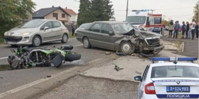 Naime vozač "mercedesa" pokušao je da skrene ulevo na sporedni put, kada je velikom brzinom naišao motor.