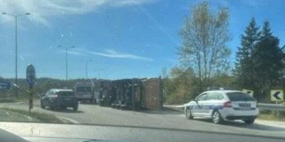 Na fotografiji objavljenoj na Instagram stranici 192 vidi se prevrnuti kamiona ali i policija i hitna pomoć.
