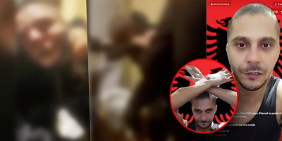 Sve vreme dok je "radio lajv" poznati tiktoker je pokazivao znak "dvoglavog orla", a na pozadini mu je bila zastava Albanije.