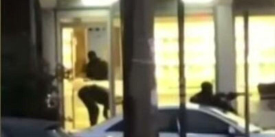 Snimak od dva minuta se završava pucnjavom jer je ipak neko obavestio policiju i kada je patrola iznenadila razbojnike počelo je puškaranje u kojem je ranjen jedan policajac.