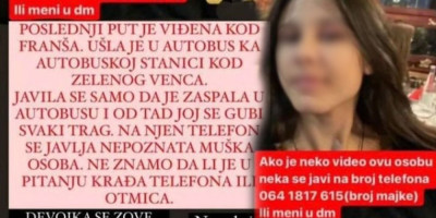 – Javila se samo da je zaspala u autobusu i od tada joj se gubi svaki trag. Na njen telefon se javlja nepoznata muška osoba. Ne znamo da li je otmica ili krađa – navodi se na pomenutoj stranici.