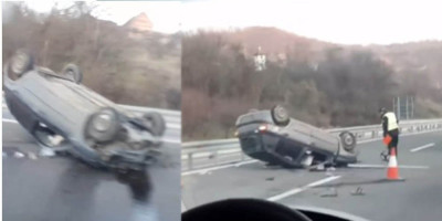 Na IG "192" objavljen je snimak sa mesta nezgode na kom se vidi prevrnut automobil, a ispod snimka piše: