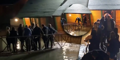 Na snimku koji se pojavio odmah na društvenim mrežama mogli su se čuti glasovi osoblja kako pozivaju goste da što brže izađu na kopno, a dok su izlazili, na pontonskom mostu koji spaja splav sa obalom, nastala je velika gužva.