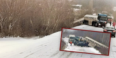 Kamion sleteo usled snežnog nanosa! Fotografije užasa kod Bora