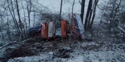 Pretpostavlja se da je kamion sleteo zbog leda koji se vidi na snimku.