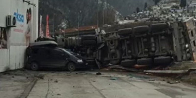 Kamion je prijepoljskih registarskih oznaka, a prilikom prevrtanja je sleteo sa magistrale i probio zaštitnu ogradu.