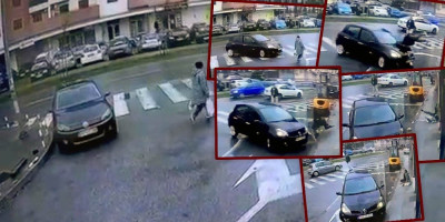 Na snimku se vidi automobil kako na pešačkom prelazu udara ženU. Posebno šokira što se na snimku vidi pešak mirno nastavlja dalje, bez ikakve želje da pomogne.