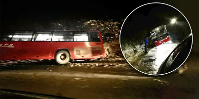Kako se može videti na snimku, koji je objavljen na Instagram stranici "192_rs", autobus je delom završio u jarku, dok je drugi deo ostao na kolovozu.