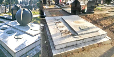 Grobnica na Bežanijskom groblju u kojoj su sahranjeni piloti Svetislav Vujović i Živorad Ostojić, mehaničar letač Mitar Vuković i mehaničar Lazar Bogdanovski oskrnavljena je pre nekoliko dana.